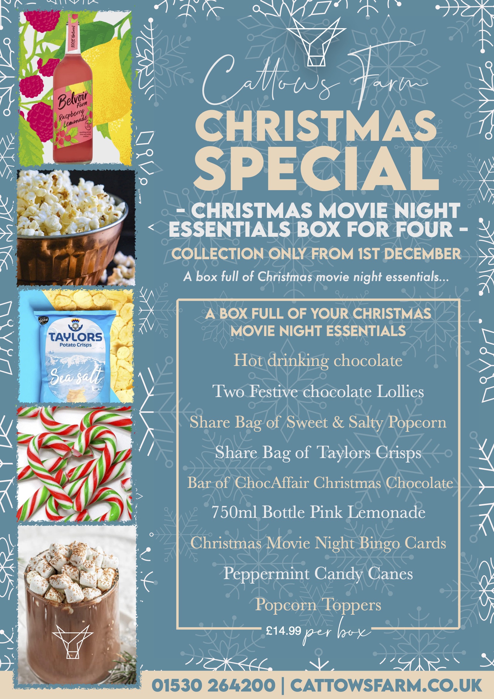 A BOX FULL OF YOUR CHRISTMAS MOVIE NIGHT ESSENTIALS – For four people.